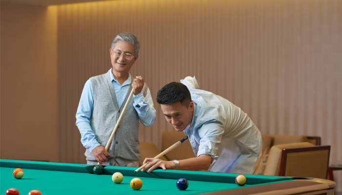 康体中心内设有开放式咖啡厅、台球室、健身房、书法室、阅读室和棋牌室等娱乐休闲场所,