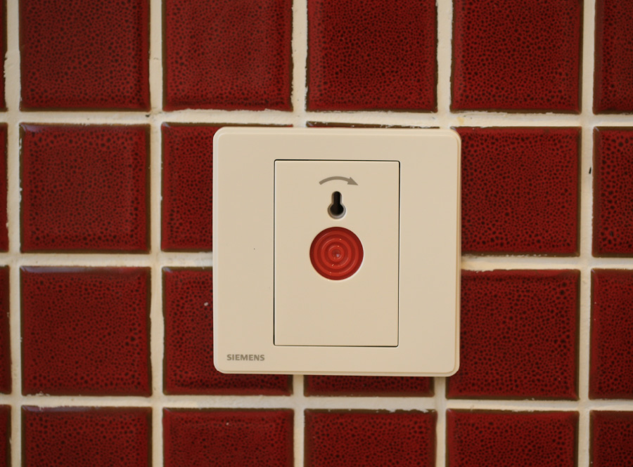遍布角落的红色紧急按钮,工作人员可对长者的突发情况做出秒速反应。 -
