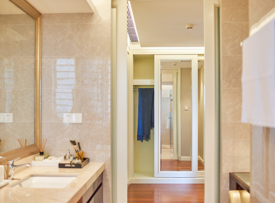 主卧配有贴心衣帽间、化妆室、小茶几等, 老人的生活更应该讲究。 -